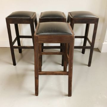 A set of four bar chairs with black vinyl seats, height 78 cm.