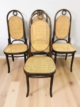 A set of four Thonet bentwood and cane high backed dining chairs.