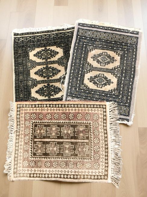 Three Middle Eastern woolen mats, largest 67 cm x 48 cm