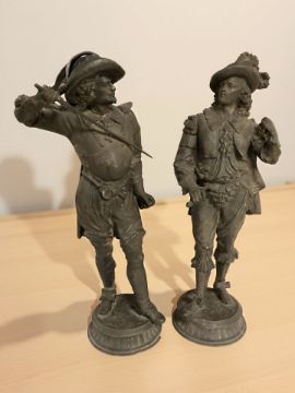 A pair of patinated metal figures of swordsmen, height 47 cm (Af)