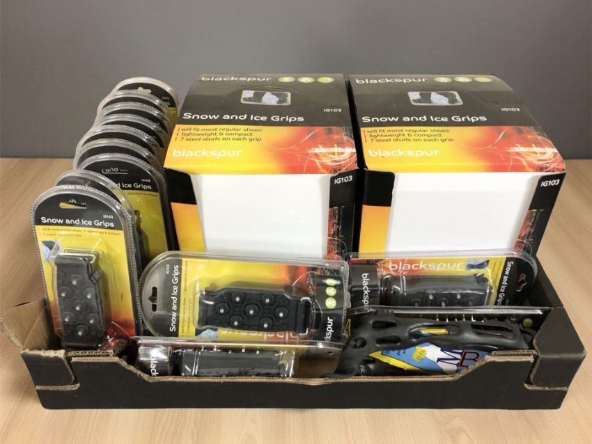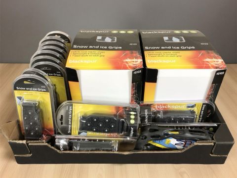 A quantity of Blackspur footwear snow and ice grips (1 box)