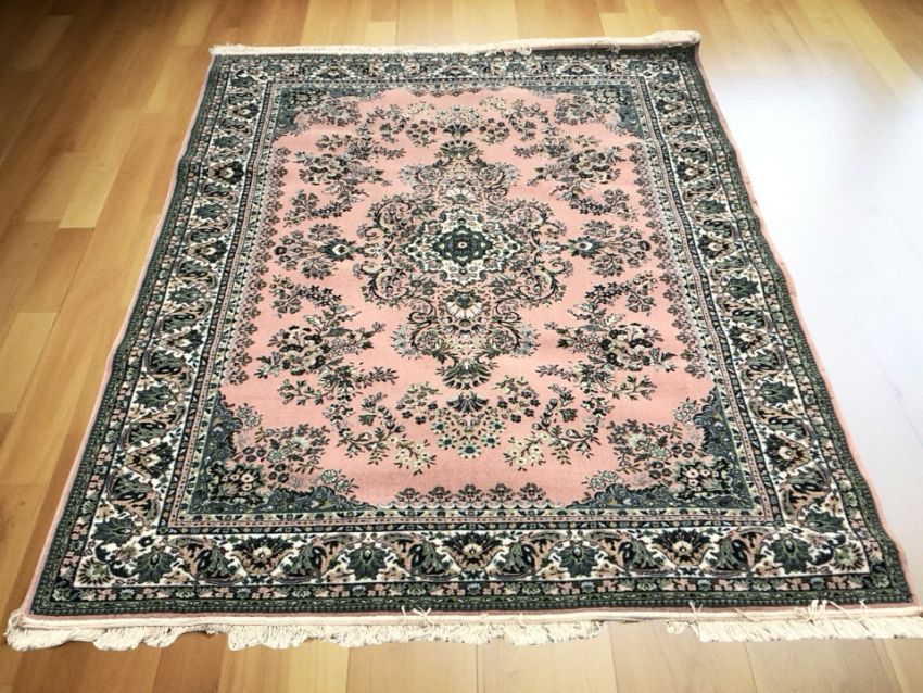 An Iranian-design rug on pink ground, 243 cm x 172 cm