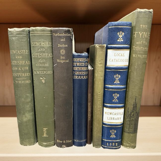 Welford, Richard : History of Newcastle and Gateshead, volume II, sixteenth century, publisher Walter Scott, London 1885, and Volume II, sixteenth and seventeenth centuries, publisher Walter Scott, London 1887, gilt green cloth bound. Together with six further volumes relating to Newcastle and the North East, Northumberland and Durham (Wedgwood), Highways and Byways in Northumbria (Graham), The Tyne and its Tributaries (Palmer), etc. (8)
