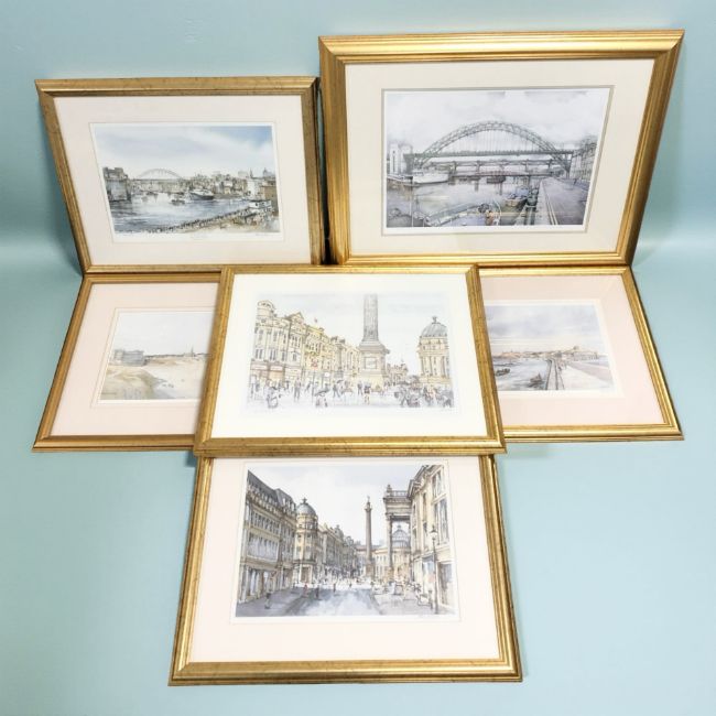 After Tom Macdonald : Two prints depicting Tynemouth Longsands and The North of the Tyne, each signed in pencil, together with three John Sibson prints and David Henshaw print