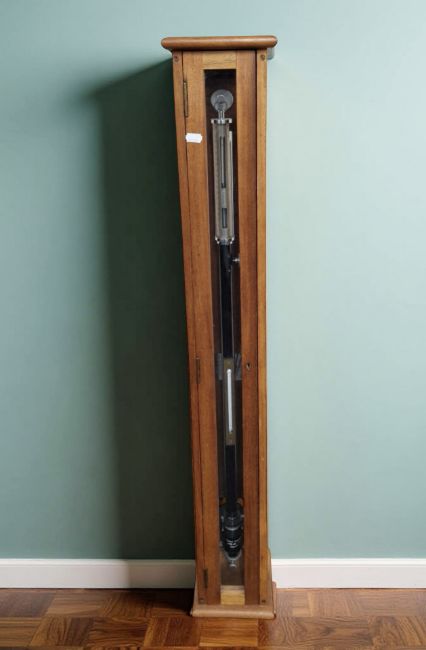 A teak cased barometer, height 118 cm.