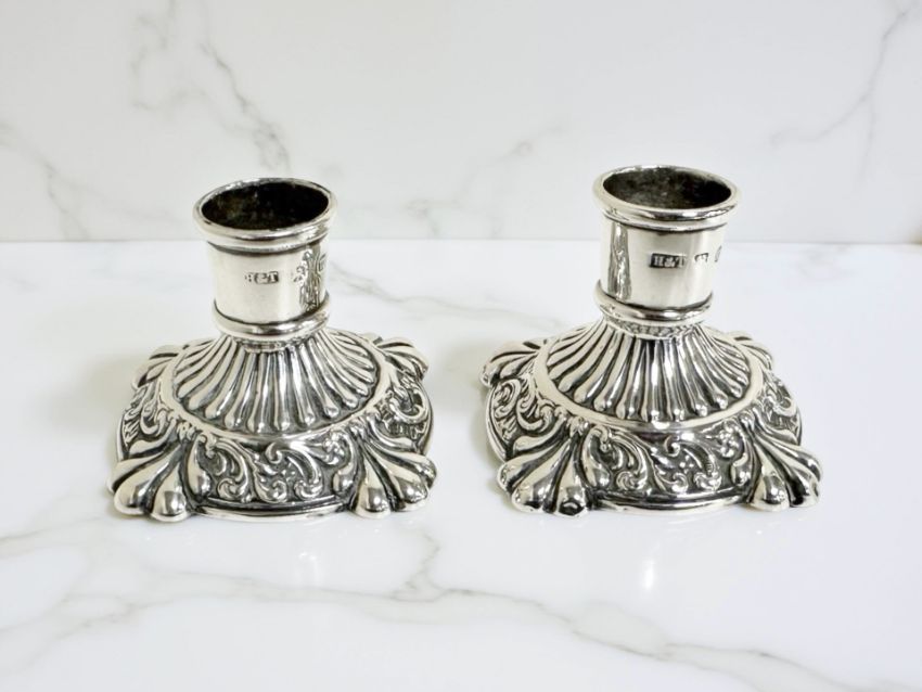 A pair of loaded-silver dwarf candlesticks, Birmingham 1911, height 3.5cm