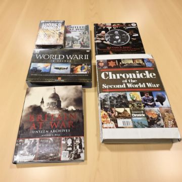 A group of DVDs, boxsets and books relating to the Second World War. (1 box)