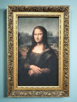 After Leonardo da Vinci :The Mona Lisa, modern colour print on fabric, 28 cm x 49 cm.