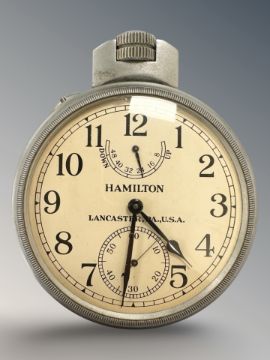 A large Hamilton Deck watch with up/down power reserve indication, No. 10137, back inscribed HS 2 (hydrographic survey), case 70mm.