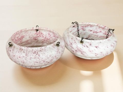 A pair of Art Deco marbled glass light shades, diameter 35 cm.