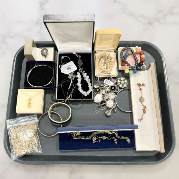Assorted costume jewellery, bangles, white metal items, etc (one tray)