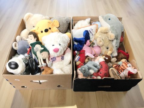 Assorted modern soft toys, teddy bears, Winnie the Pooh, etc. (2 boxes)