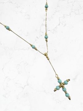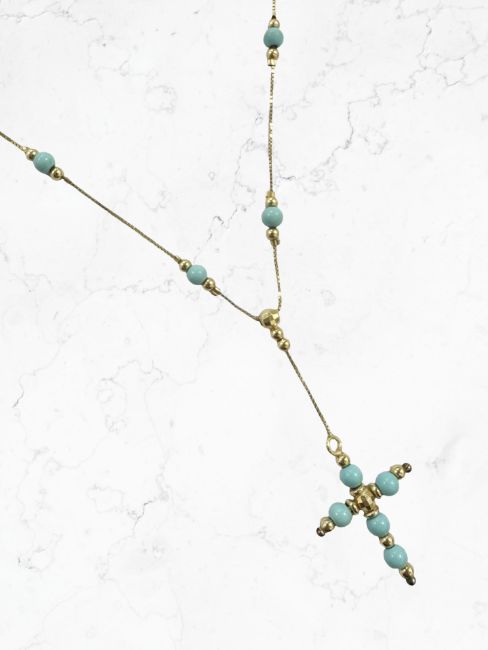 A 9ct gold faux-turquoise crucifix pendant on chain