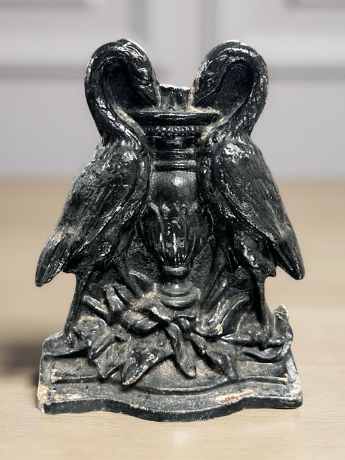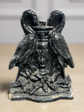 A Victorian painted cast iron door stop in the form of two herons, height 20 cm.