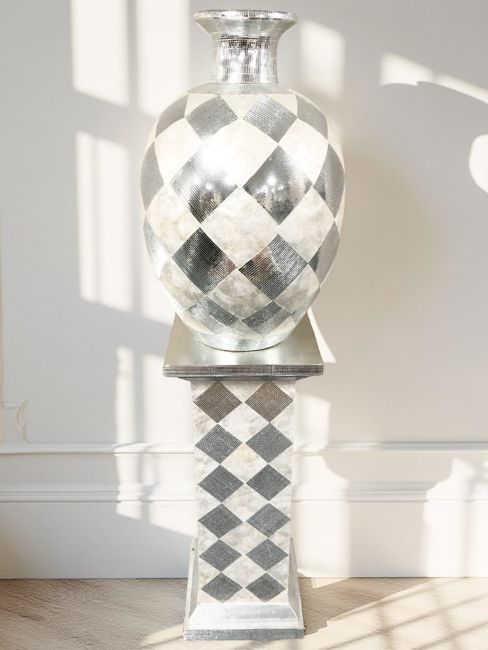 A contemporary silvered pedestal and matching vase, overall 141 cm high.