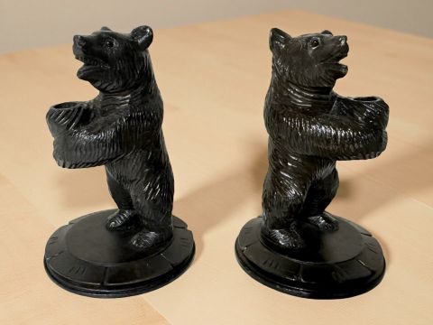 A pair of Black Forest style carved and stained wooden pen stands in the form of bears, height 11.5 cm.