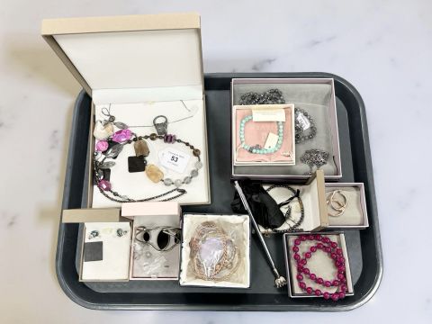 Assorted costume jewellery including various bangles, silver items, etc (one tray)