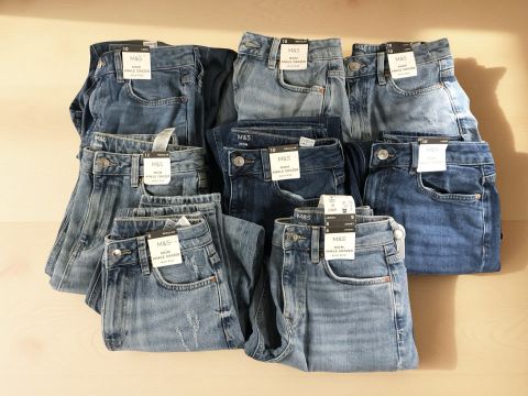 Eight pairs of M&S lady's denim jeans in various sizes, with retail tags. (1 box)