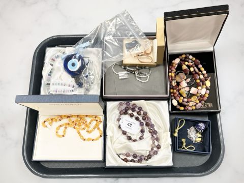Assorted costume jewellery including silver items, bead necklaces etc (one tray)