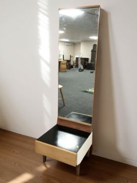 A 20th century teak cheval mirror, fitted a drawer beneath, width 45 cm.