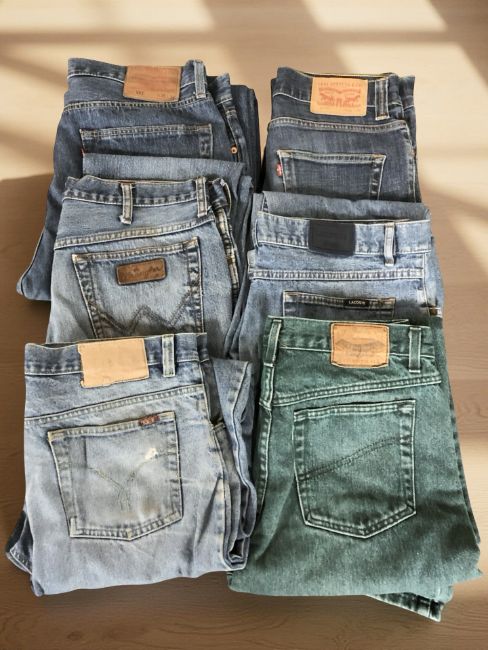 Six pairs of denim jeans including Levi Strauss, Wrangler (one box)