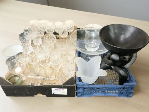 Assorted drinking glasses, bowls, etc (two boxes)