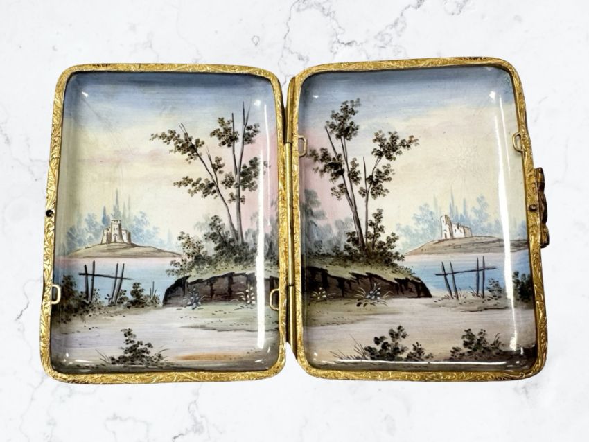 A continental hand painted porcelain and gilt mounted pictorial cigarette case.