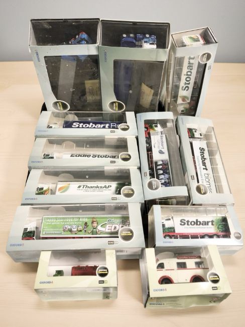 A group of Oxford 1:76 scale die cast haulage vehicles including Eddie Stobart.