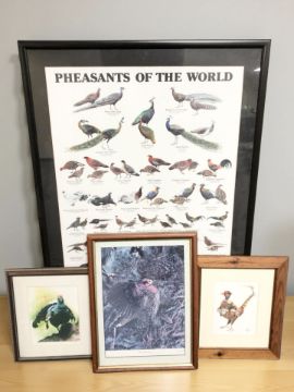 A colour print depicting world pheasants and three further similar pictures.