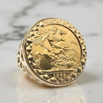 A full gold sovereign 1979 in 9ct gold ring mount, size T½