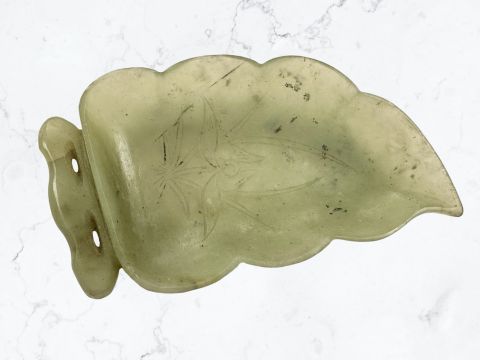 An antique Chinese pale green jade leaf dish, probably Qing dynasty, 110 mm x 70 mm