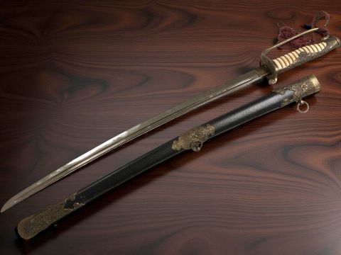 A reproduction Japanese Second World War II naval officer's sword, in scabbard.