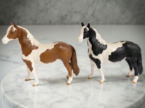 Two Beswick figures : Pinto Pony, Piebald and Skewbald, height 16.5 cm, both matte finished.