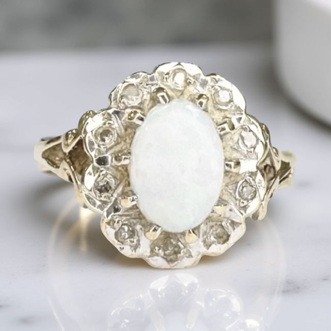 A 9ct gold opal and diamond cluster ring, size I½