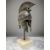 A bronze replica of an Ancient Greek hoplite battle helmet, on square marble plinth, height 43 cm.