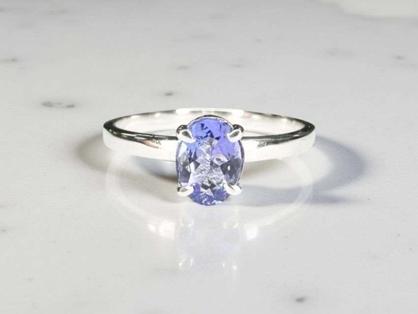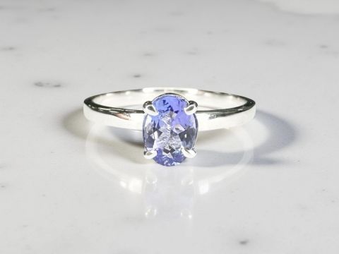 An 18ct white gold tanzanite solitaire ring, the oval-cut tanzanite weighing an estimated 0.55 carat, size L.