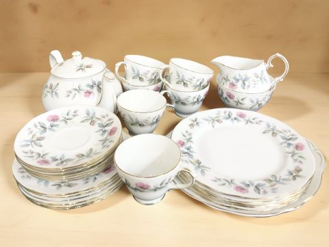 Twenty-seven pieces of Duchess Bramble Rose tea china