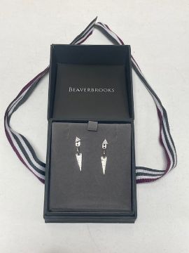 A group of jewellery items including, a pair of Sterling silver diamonds set earrings retailed by Beaverbrooks in original box, crucifix on silver chain, silver locket, vintage bog oak brooch, 9ct rolled gold spring bracelet part, dress rings, silver earrings in box etc