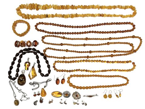 The pair of 9ct gold amber earrings weigh 1.1g.