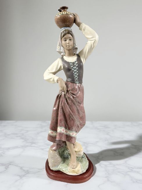 A large Lladro matt glaze figure, Returning from the Well, number 2342, on wooden plinth, overall 80 cm high