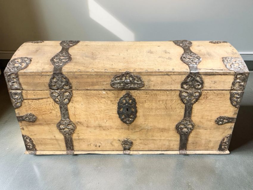 A 19th century continental pine and metal bound domed blanket chest, width 136 cm