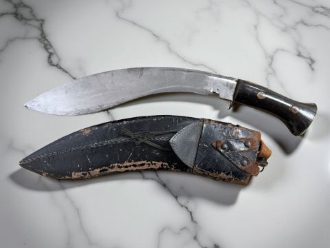 An antique kukri knife, in scabbard.