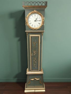 A continental painted long case clock with pendulum and two weights