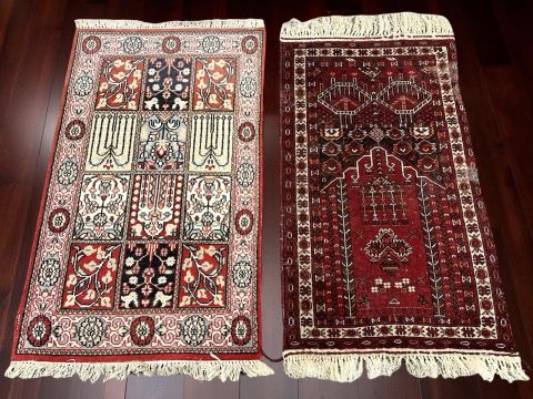 A Balouch prayer rug, Afghanistan, 140 cm x 72 cm. (moth damage to pile), together with a further eastern woolen rug. (2)