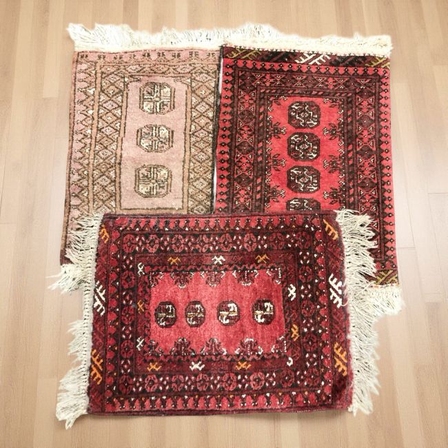 Three Turkoman rugs, Afghanistan, each approximately 77 cm x 51 cm.