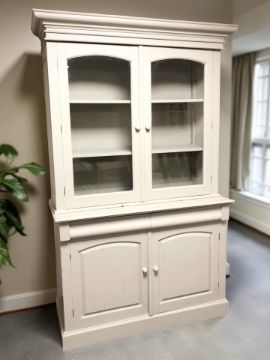 A 20th century painted pine bookcase, with glazed cabinet doors above, and drawers and cupboards beneath, 128 cm x 53 cm x 212 cm.