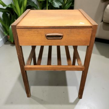A teak single drawer occasional table with under shelf, width 44 cm.