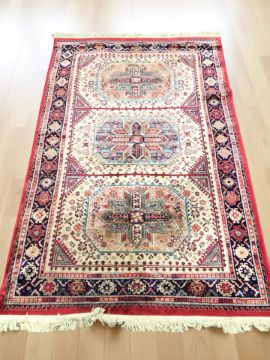 A machine made rug of Caucasian design, 244 cm x 152 cm.