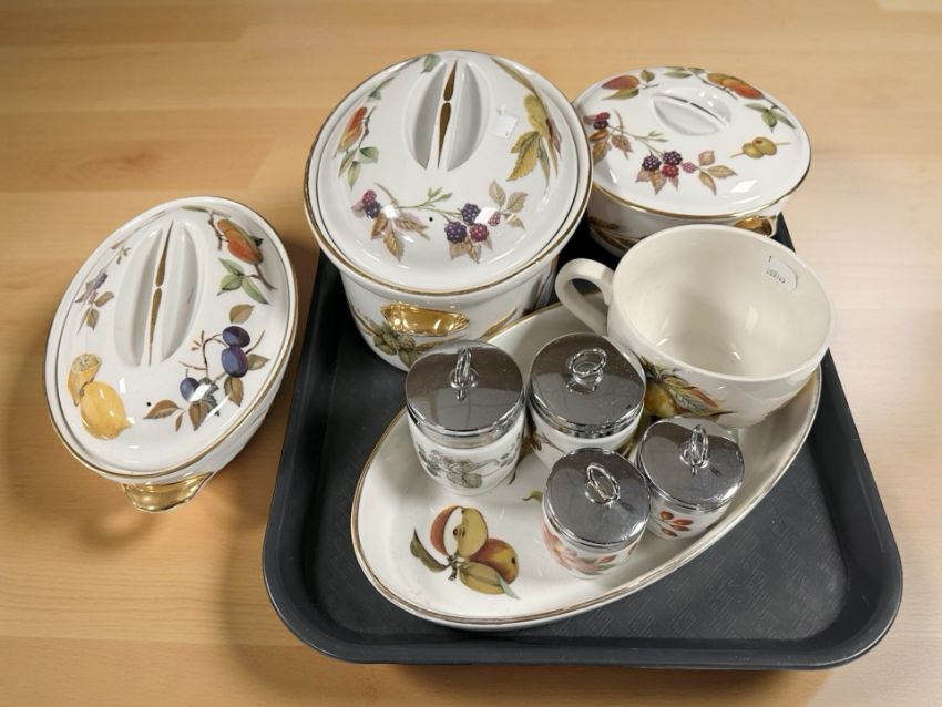 A group of Royal Worcester Evesham dinner wares, Royal Worcester egg coddlers, Portmeirion mug etc