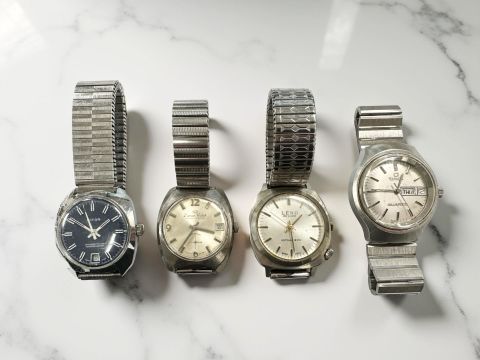 Four vintage gent's stainless steel wristwatches to include Lator, Deman Watch, Leno De Luxe, and Timex